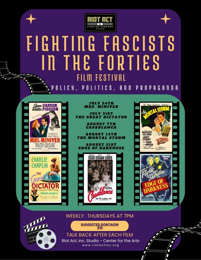 Riot Act presents “Fighting Fascists In The Forties” Film Festival. Thursdays at 7 PM.
